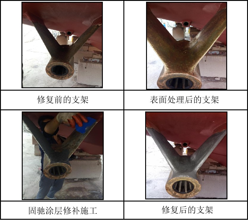 产品特点:运用固驰表面重塑材料修复气蚀严重的引航船螺旋桨支架
