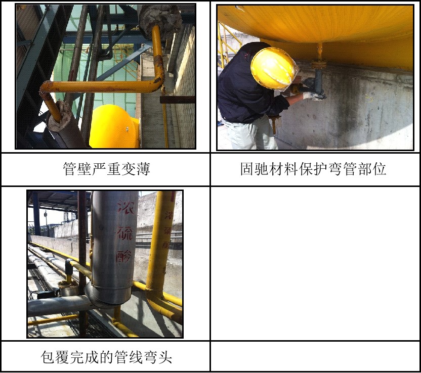 产品特点:用固驰表面重塑材料修复保护严重变薄的浓硫酸管线