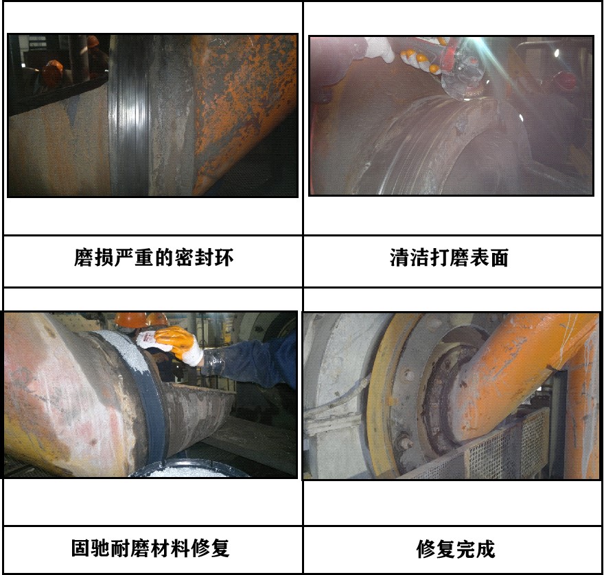 产品特点:使用固驰碳化硅耐磨材料修复受损的球磨机密封环