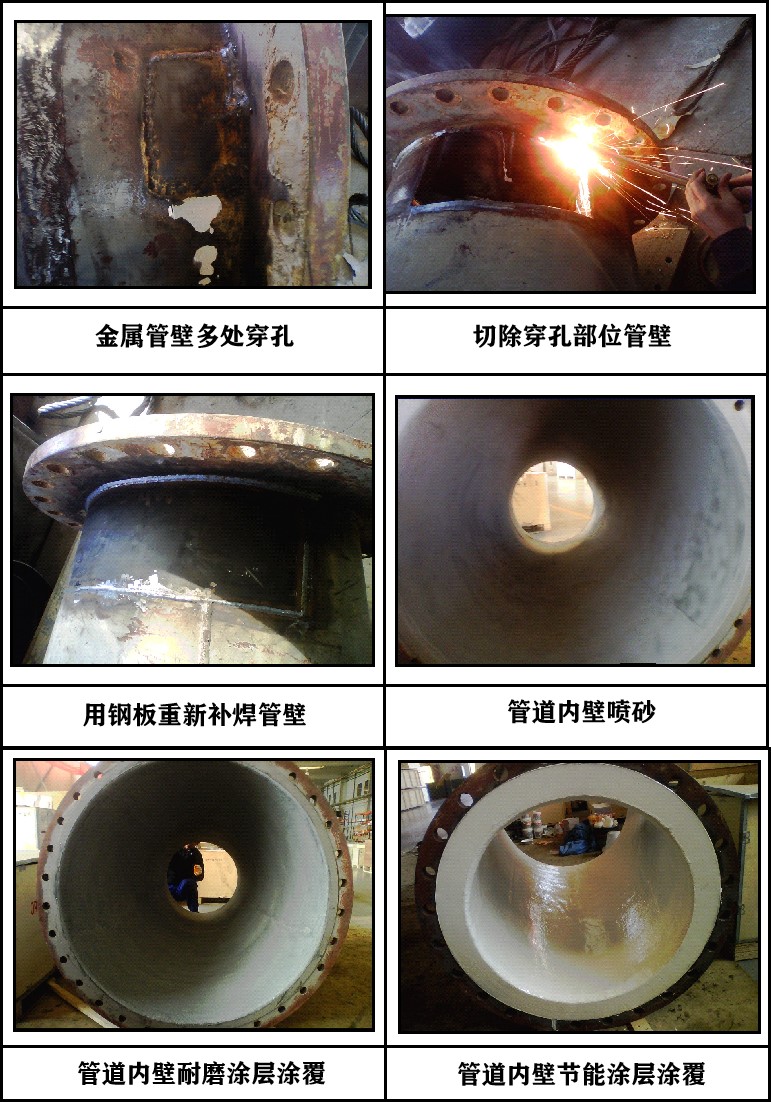 产品特点:使用固驰高分子材料修复磨损穿孔的脱硫管道