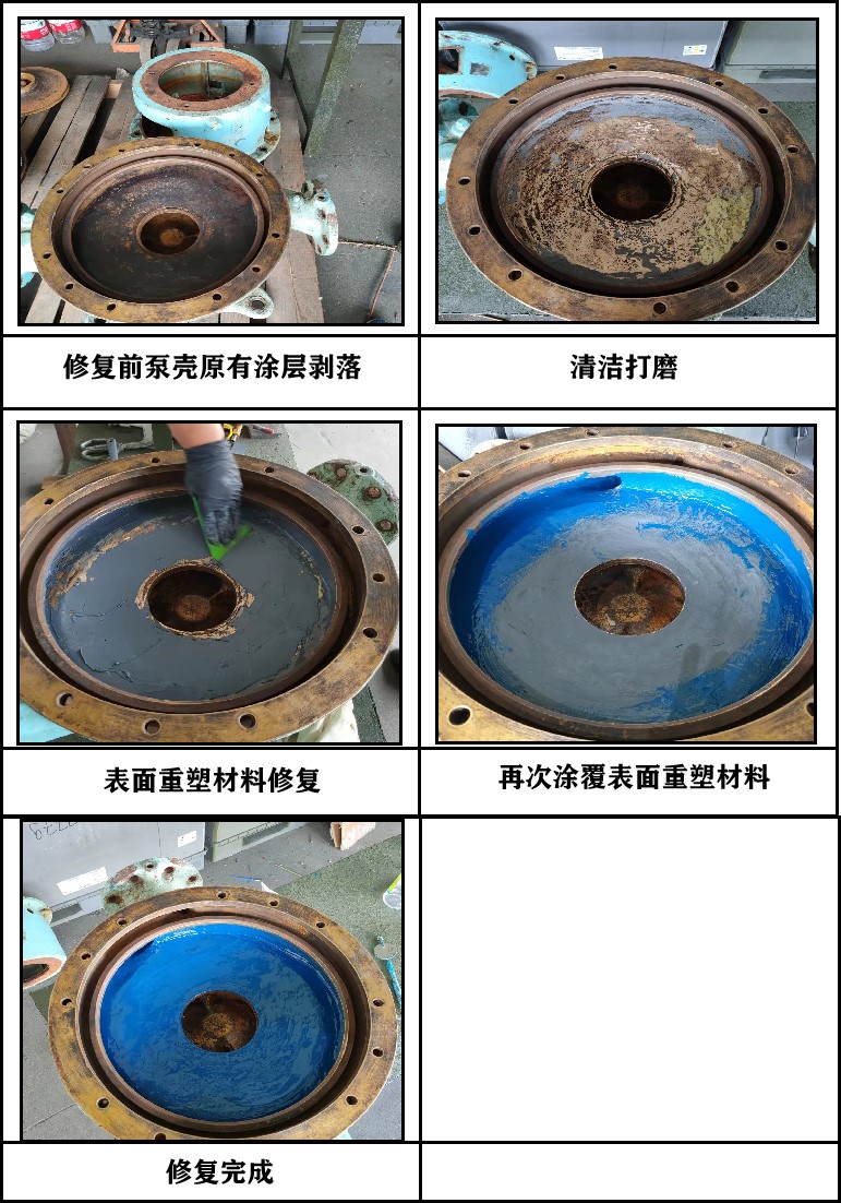 产品特点:使用固驰表面重塑材料修复离心泵泵壳
