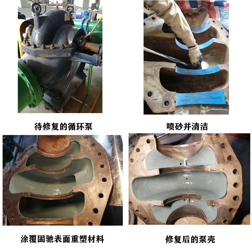 产品特点:使用固驰表面重塑材料修复磨损的水泵泵壳,并进行节能改造